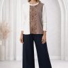 Nuestro set de morley en tono chocolate y otros tonos combina remera de manga larga y pantalón amplio con una caída impecable.